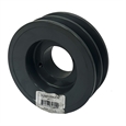 Fractional HP, double groove, cast iron pulley. Use with a H-type split taper bushing (sold separately). For use with type "A" and "B" belts. Fully balanced.